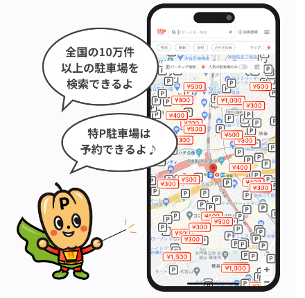 特Pは、スマートフォンやパソコンから駐車場を検索し、そのまま予約までできる便利なサービスです。